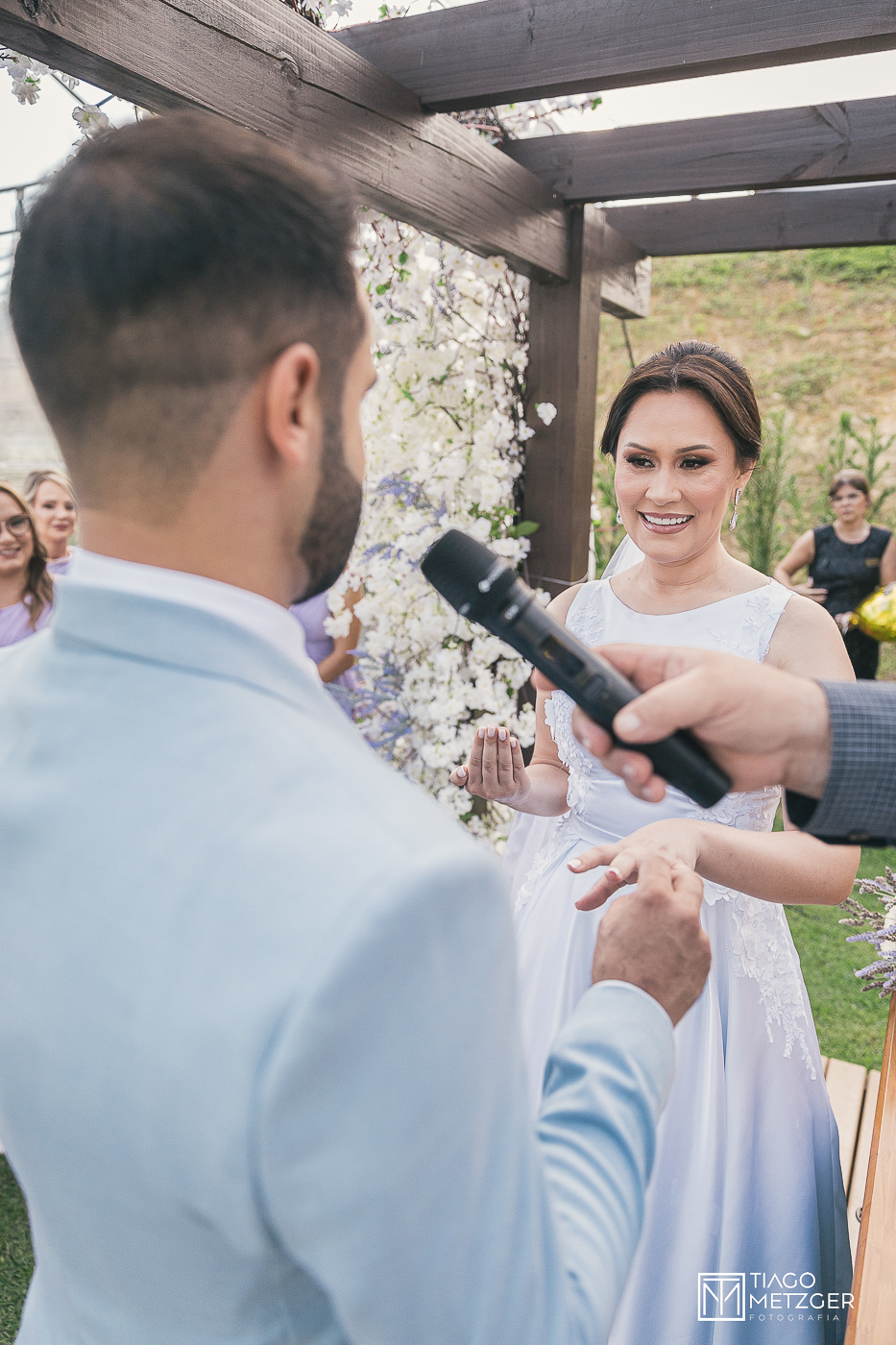 Durante a cerimônia, capturei momentos emocionantes e olhares apaixonados, sorrisos sinceros e lágrimas de alegria e emoção. Foi uma honra estar presente, capturando cada detalhe e emoção deste dia tão significativo.